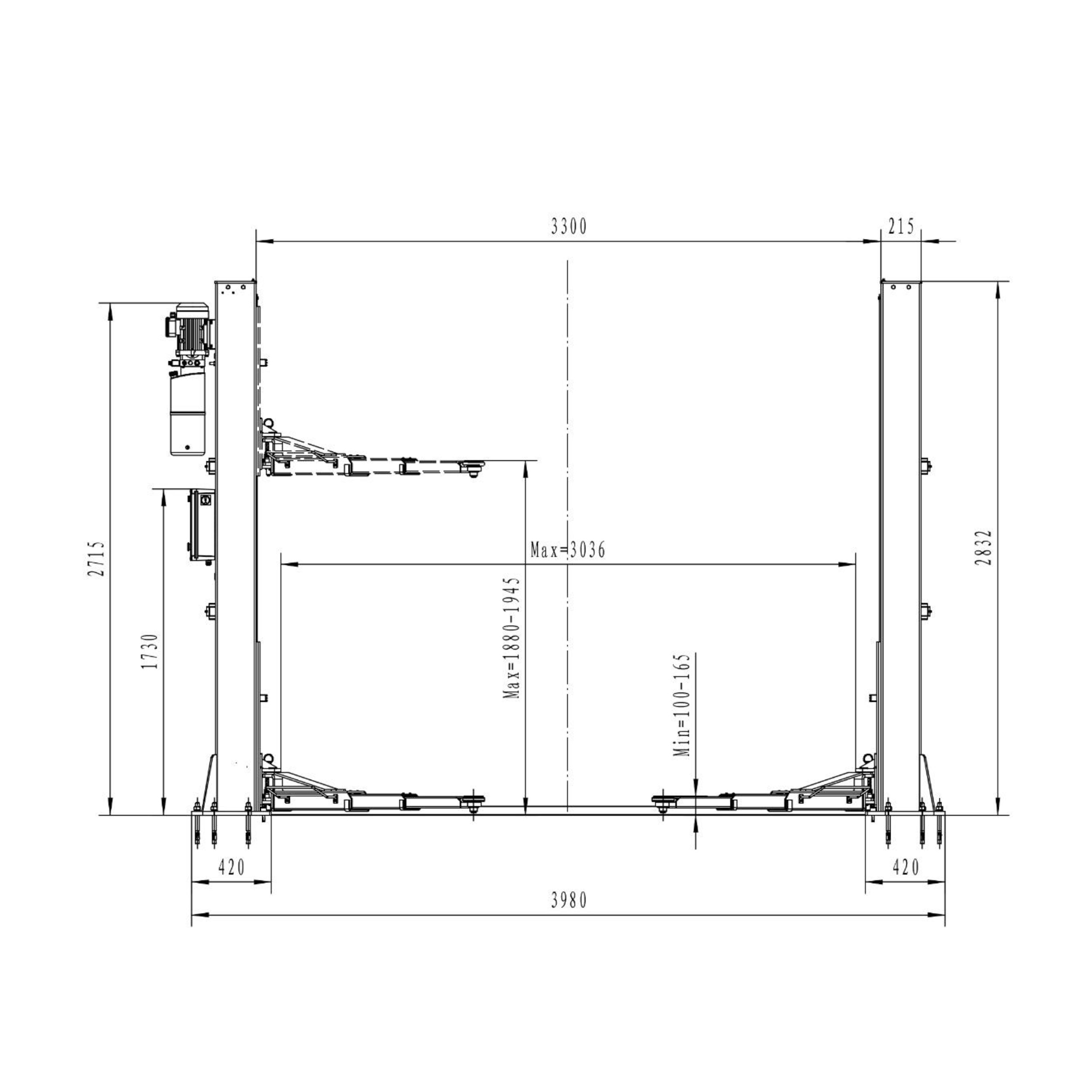 • Odległość między kolumnami: 3300 mm