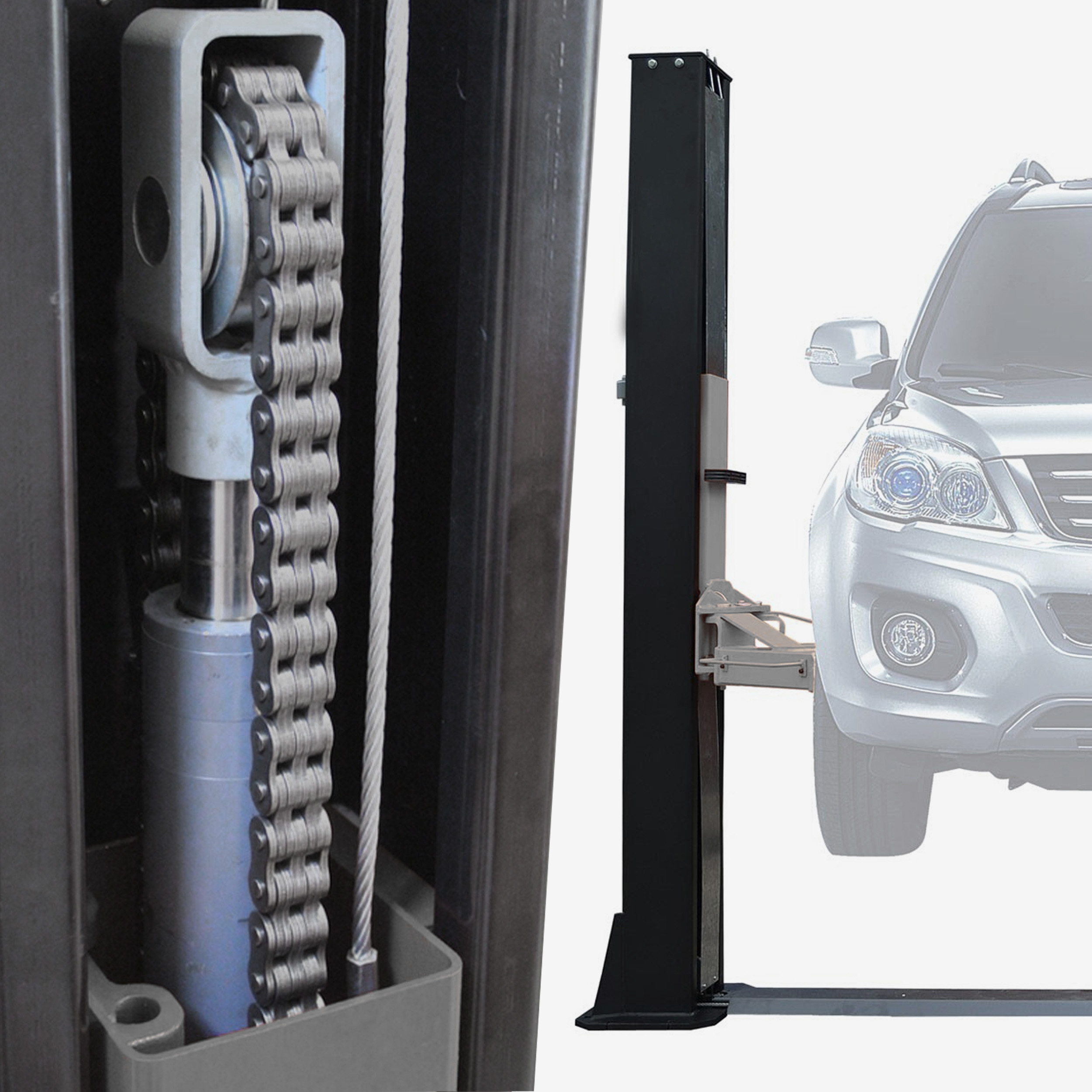 • łańcuchy napędowe klasy przemysłowej, zaprojektowane tak, by przenieść maksymalny udźwig bez ryzyka rozciągnięcia.